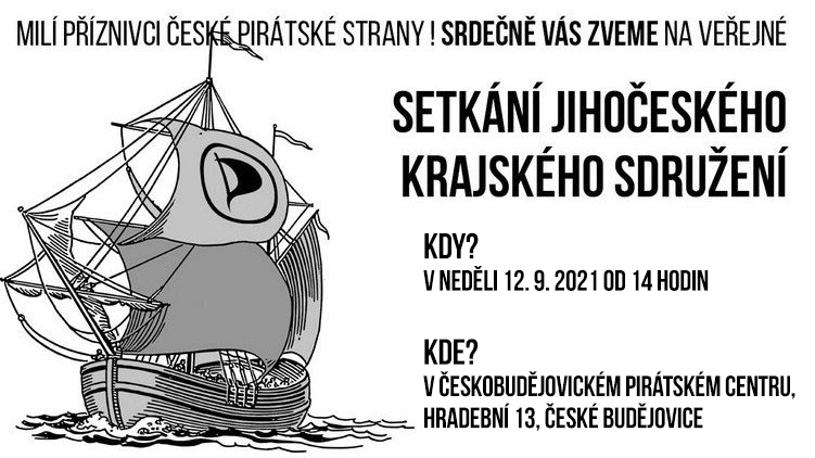 Zveme na další setkání jihočeských Pirátů, které se uskuteční v neděli 12. září 2021 v Českých Budějovicích na adrese Hradební 13 (Českobudějovické pirátské centrum). Všichni jste srdečně zváni, přijďte si poslechnout něco o naší práci a činnosti v Jihočeském kraji, zapojte se do diskuze.