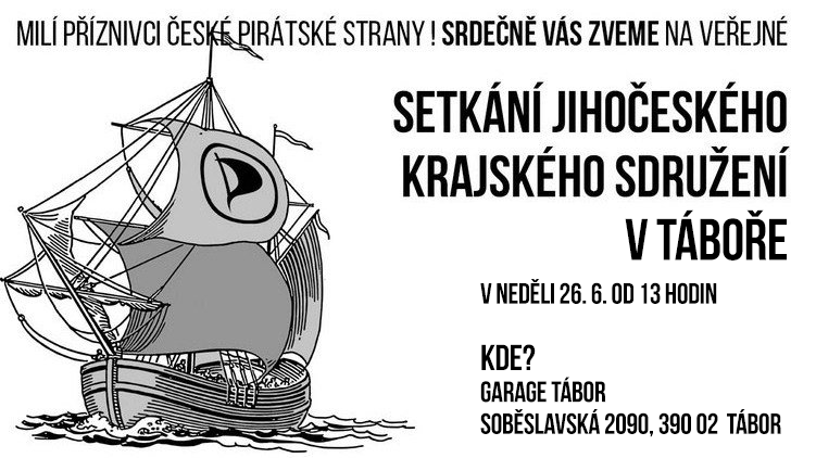 Zveme na další setkání jihočeských Pirátů, které se uskuteční v neděli 26. června 2022 v Táboře. Všichni jste srdečně zváni, přijďte si poslechnout něco o naší práci a činnosti v Jihočeském kraji, zapojte se do diskuze.