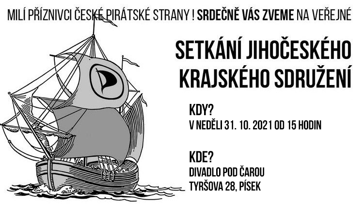 Zveme na další setkání jihočeských Pirátů, které se uskuteční v neděli 31. října 2021 v Písku v Divadle Pod čarou na adrese Tyršova 28. Všichni jste srdečně zváni, přijďte si poslechnout něco o naší práci a činnosti v Jihočeském kraji, zapojte se do diskuze.
