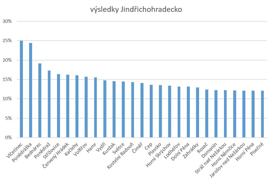 Na Jindřichohradecku více než čtvrtinu hlasů zajistil Jindřichův Hradec. Podpora Pirátů byla však napříč okresem rozložena vcelku rovnoměrně. Jistě se projevila intenzivní kampaň a podpora od dobrovolníků – rozdávání Pirátských listů, pirátské bannery na domech sympatizantů apod.